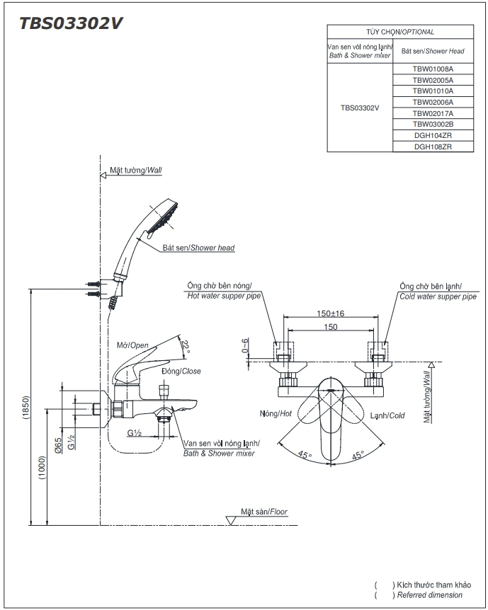 6. Bản vẽ kỹ thuật 2D vòi sen tắm nóng lạnh TBS03302V/TBW03002B