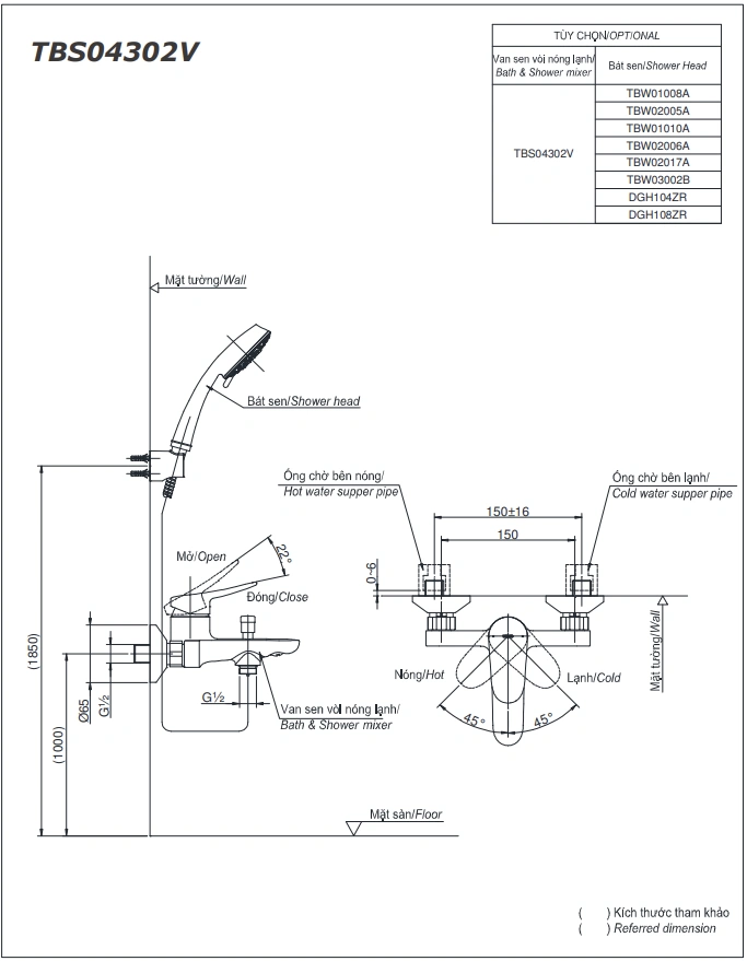 6. Bản vẽ kỹ thuật 2D vòi sen tắm nóng lạnh TBS04302V/TBW03002B