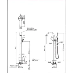 6. Bản vẽ kỹ thuật 2D vòi xả bồn tắm đặt sàn TBP01301A/TBN01105B