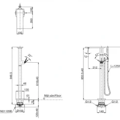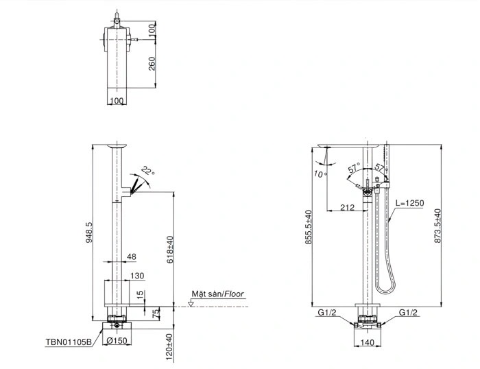 6. Bản vẽ kỹ thuật 2D vòi xả bồn tắm nóng lạnh TBP02303AA/TBN01105B