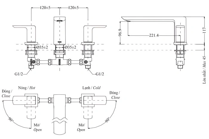 Chất liệu: Đồng thau mạ crom hoặc inox cao cấp.