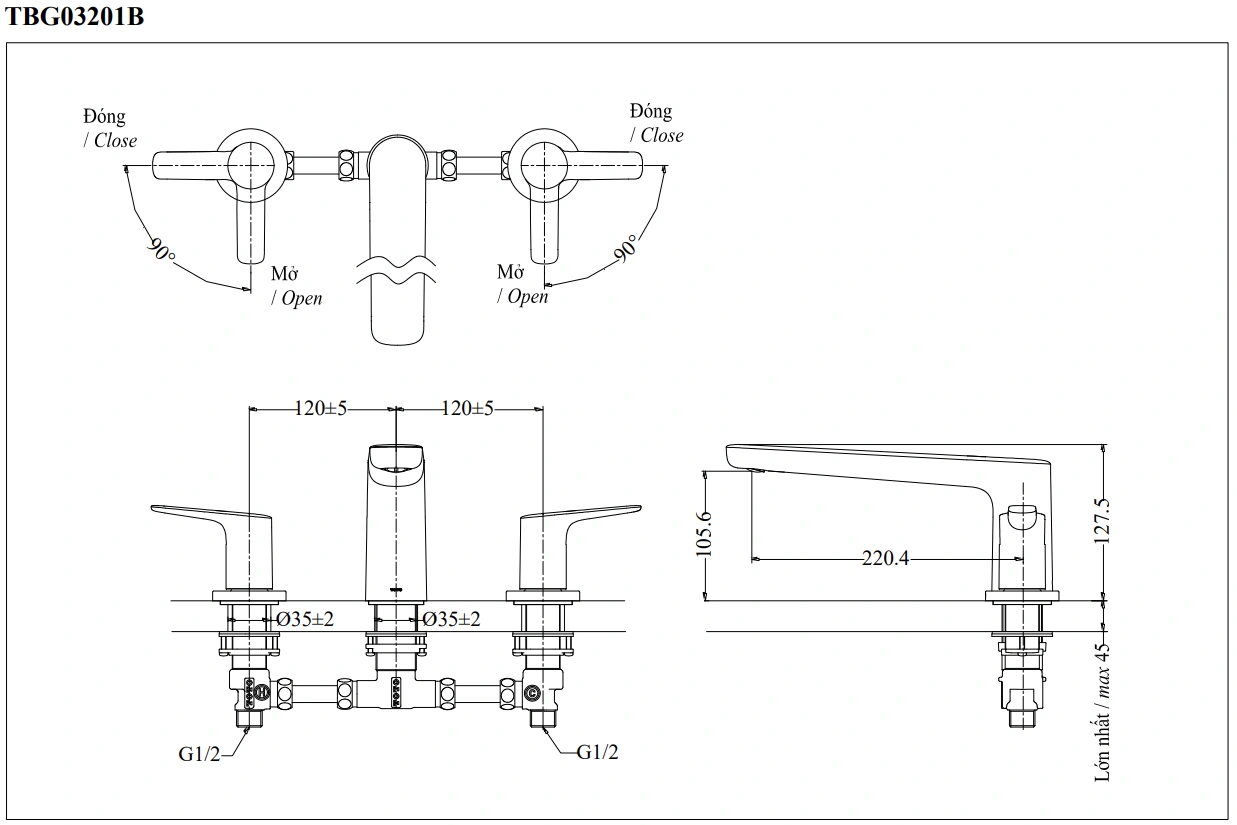 Vòi xả bồn tắm nóng lạnh TBG03201BA (GS)
