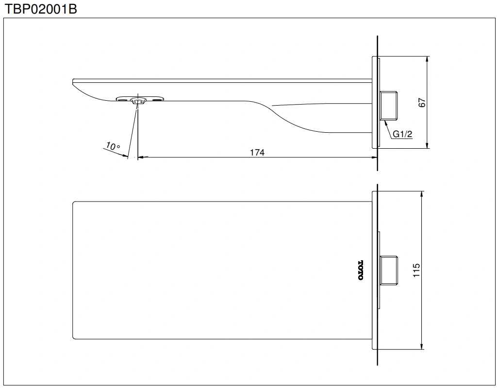 6. Bản vẽ kỹ thuật 2D vòi xả bồn tắm TBP02001B