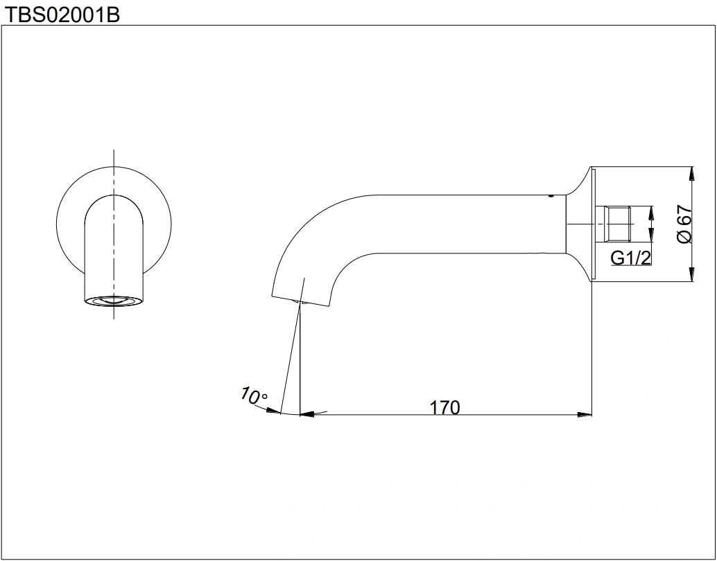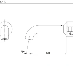 6. Bản vẽ kỹ thuật 2D vòi xả bồn tắm TBS02001B